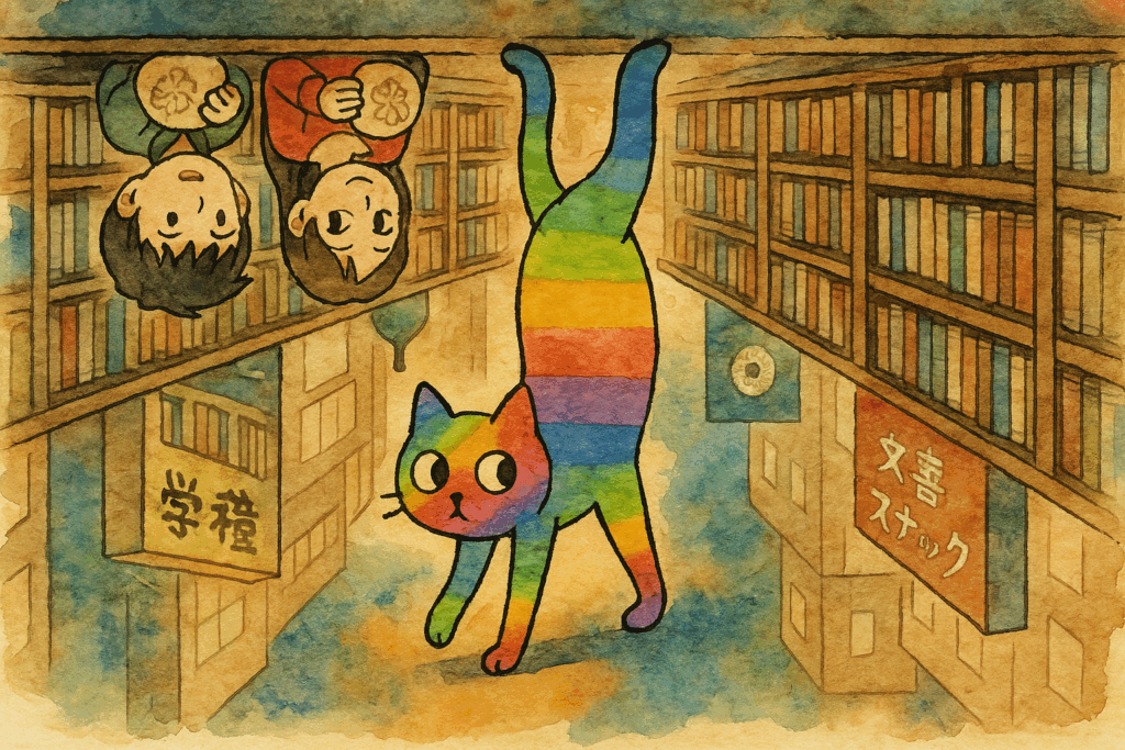 嫉妬まんじゅうを頬に当て、逆さまの図書館で怪物と対峙するナツメ。不条理と笑いの果てに語られる「嫉妬の定義」とは──。 -