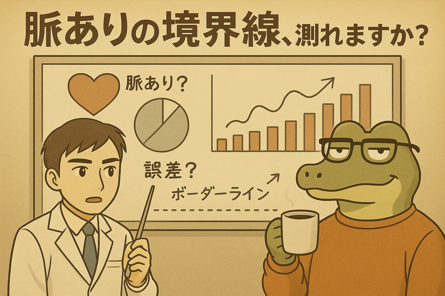ワニオ「なるほど。 行動がひとつにまとまるのが“脈あり”、 行動が散らばるのが“脈なし”……。」