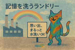 最初にやって来たのは、派手な服の若い女性だった。 「なにこれ? 映えないね。SNSに載せられないじゃん。」 「映えへんけど、たぶん味はする。」 「味? なに味?」 「相手の寝癖を直すときの指のぬくもり。あと、夜中の既読スルーに泣いたあとに飲むミネラル味やな。」