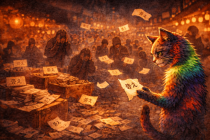 虹色の毛並みをした猫が、