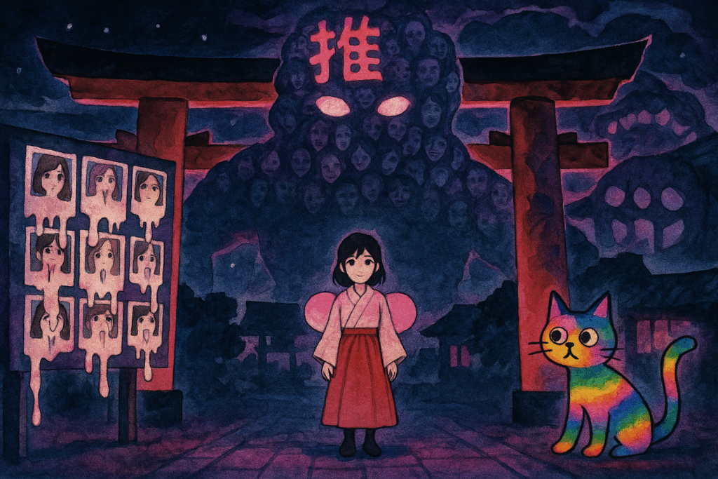 推しは恋か、それとも孤独の代用品か──。ナツメが迷い込む「推し神社」で、溶けかけたプリクラと奇妙な巫女ミユが語る。笑いと不条理が交錯するナツメ式第3話。 -