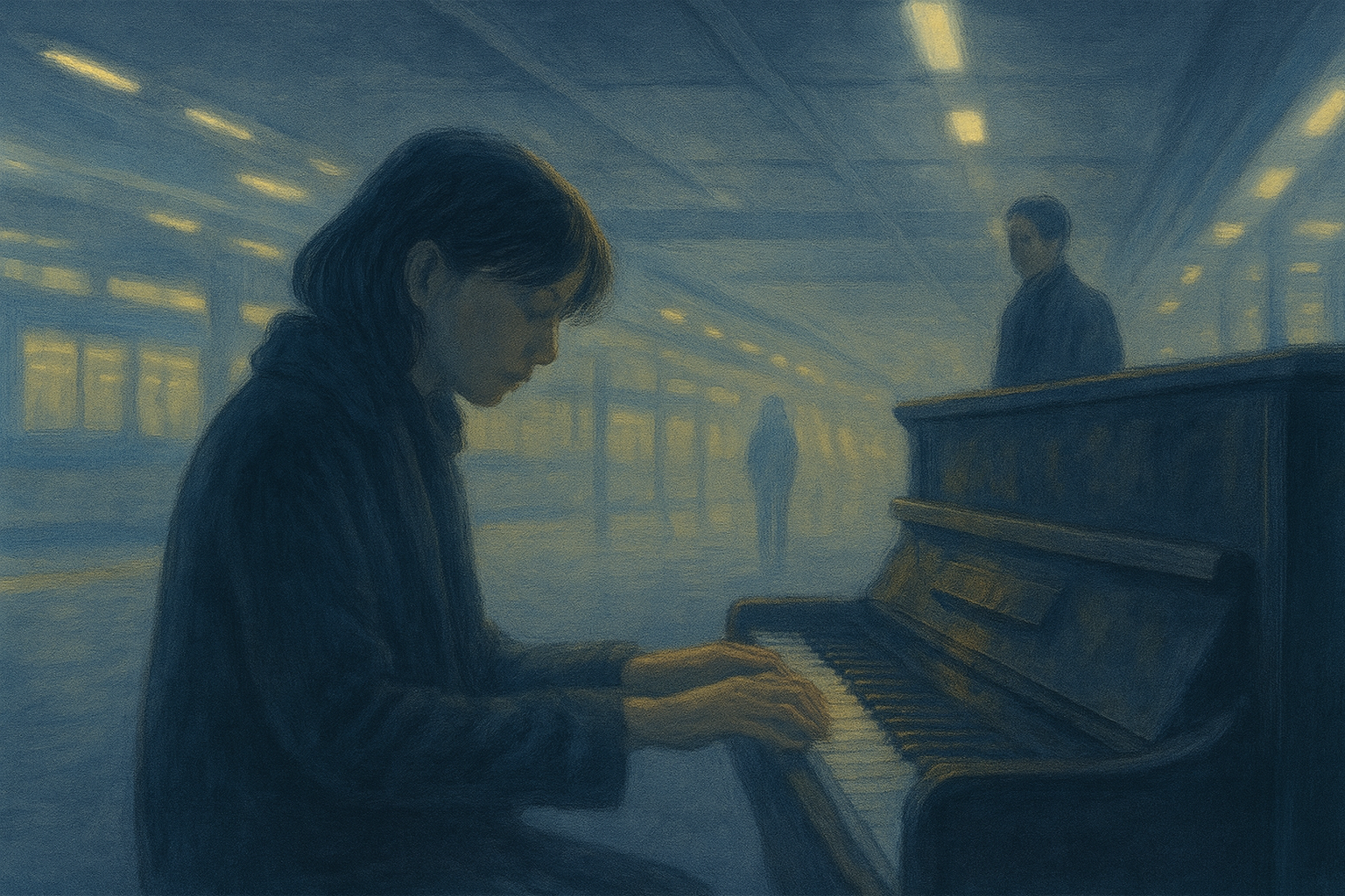 音がゆるやかに広がり、駅のタイルに反射して消えていく。 悲しいようで、明るいようで、どちらとも言えない曲。